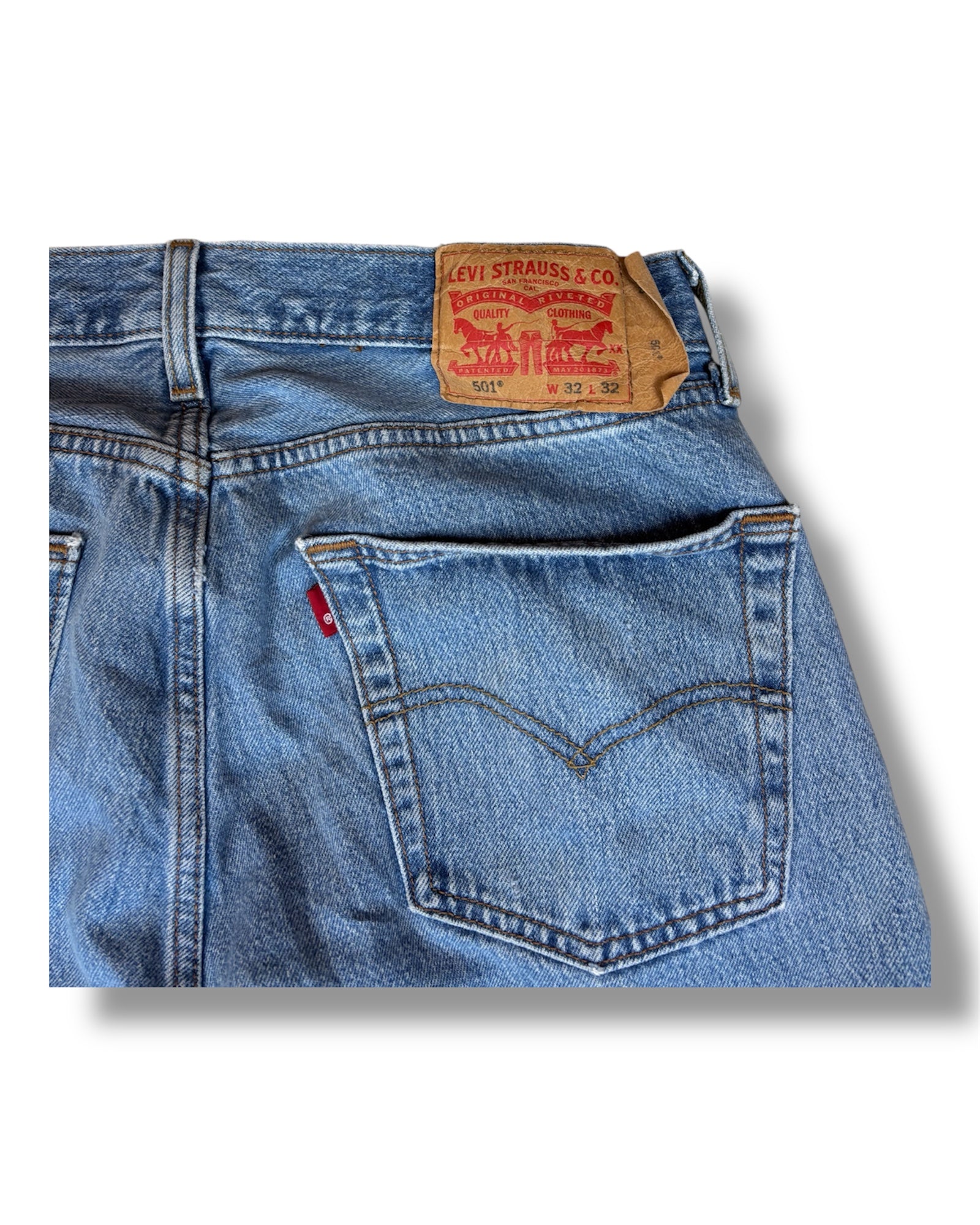 Klassische blaue Levi’s 501 Jeans im Vintage-Look, zeitloser Schnitt und robustes Denim.