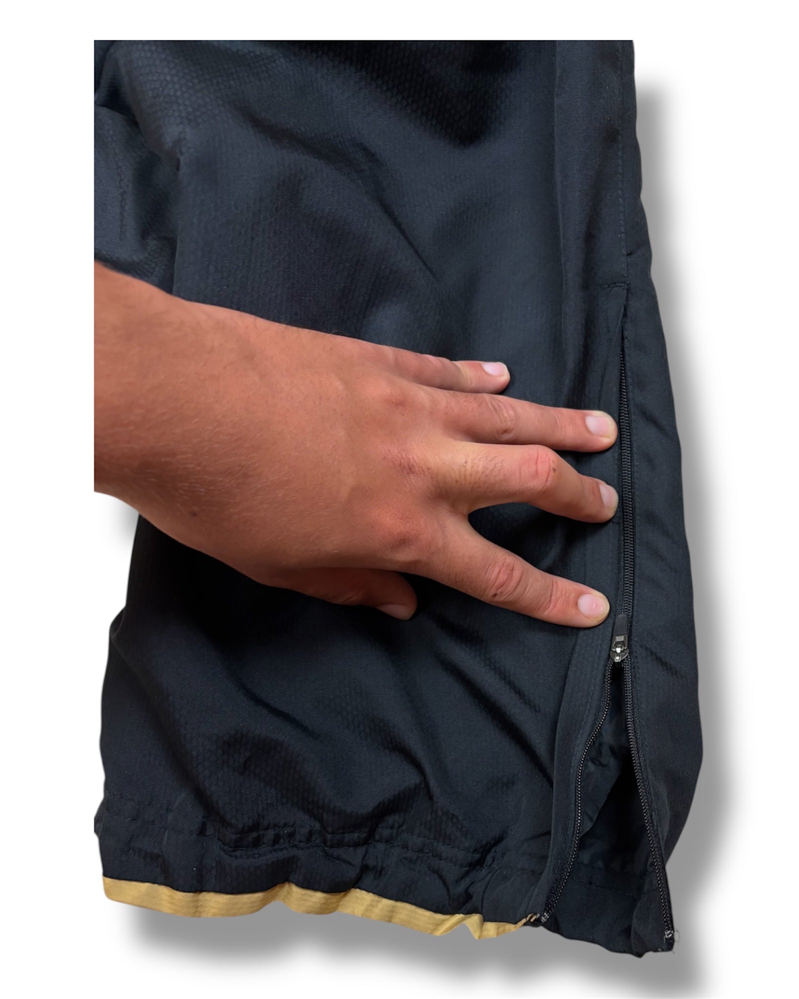 Schwarzer Nike Total 90 Trainingsanzug mit Logo auf Oberteil und Hose, sportlicher Retro-Style.