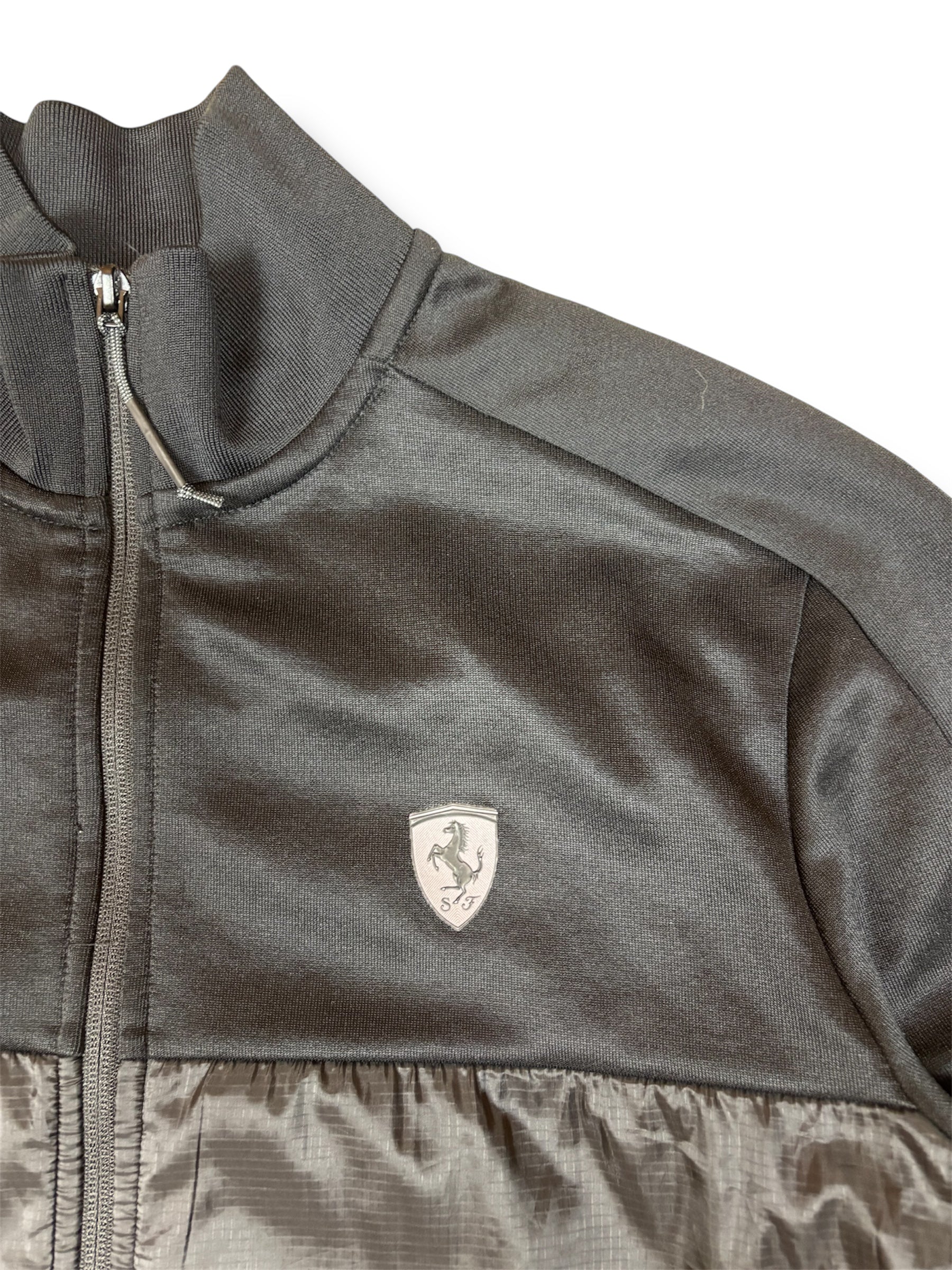 Puma Ferrari Zipper in Schwarz mit gesticktem Ferrari-Wappen auf der Brust und Puma-Logo am Saum.